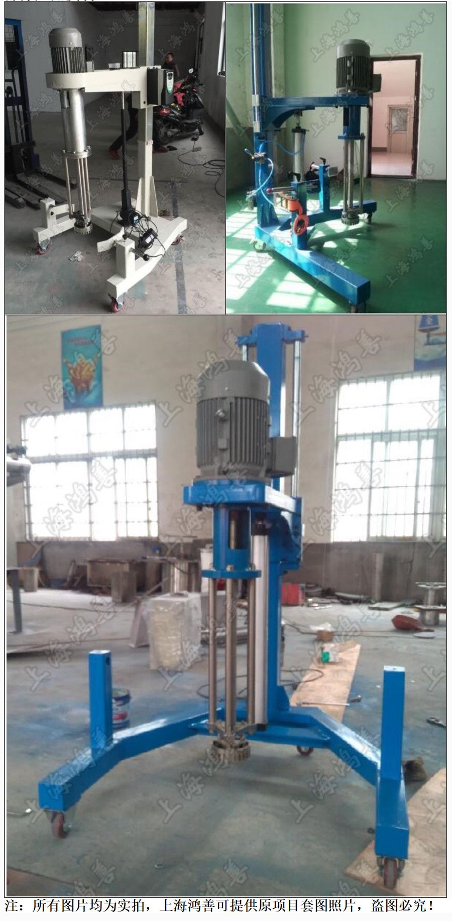 参数:型号 功率 处理量 (L) 转速 升降行程 (mm) (kw) (rpm) HRHQ-1.1 1.1 ≤50 0-2930 600 HRHQ-2.2 2.2 ≤150 0-2930 600 HRHQ-4 4 ≤400 0-2930 800 HRHQ-7.5 7.5 ≤800 0-2930 900 HRHQ-11 11 ≤1000 0-2930 900