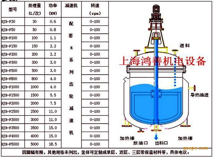 加工定制:是 品牌:honsan 型号:HJBF 功率:2.2-137kw w 容量:50-20000 L 搅拌转速:0-100 转/分 尺寸:参考详情 mm 重量:参考详情 kg 适用范围:不锈钢304或316L 搅拌釜,电加热反应釜 ,不锈钢反应釜 ,高压反应釜, 高速搅拌釜