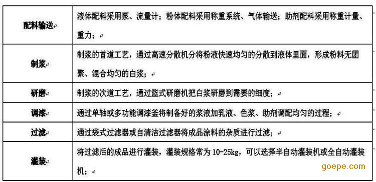 水性涂料成套设备采用了真空自动进料系统、计量系统、篮式分散研磨系统、多功能搅拌调漆系统、清洗系统、自动化控制系统,自动灌装等先进的生产方法,完全自动化生产过程,减轻了操作人员工作强度,更避免了人为因素产生的质量问题。设备能独立完成真空上料、分散、研磨、过滤以及半自动灌装全工业过程。设计产品可根据生产规模进行定制,该设备实现半自动化过程控制,节约场地和人员,便于管理。